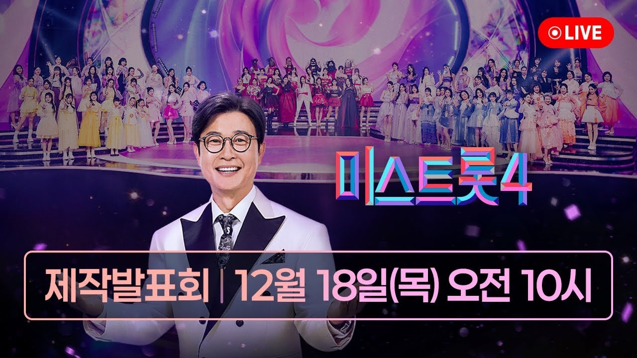 - 미스트롯4, 2025년 12월 18일 목요일 밤 10시 TV조선에서 첫 방송.