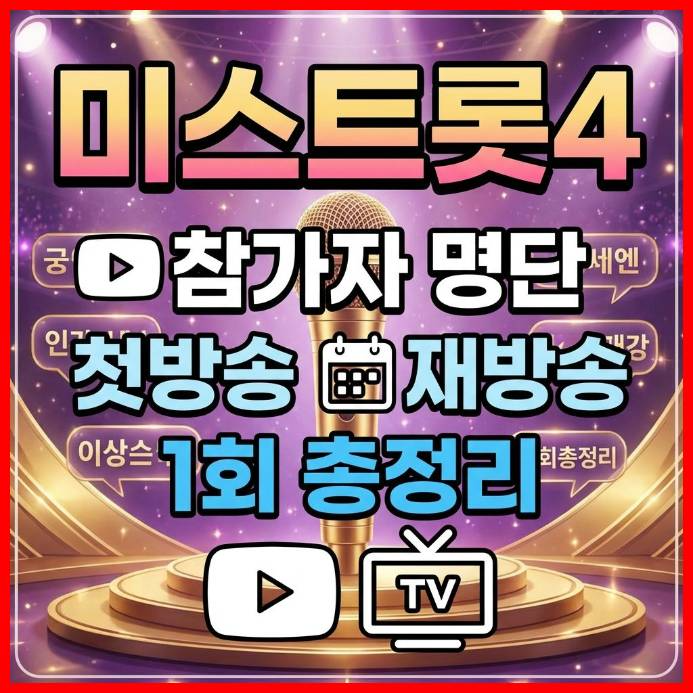 트로트의 판을 뒤흔들 새로운 여왕의 탄생을 함께 지켜보세요! 지금까지 '미스트롯4' 참가자 명단, 첫방송, 재방송, 다시보기, 그리고 1회 총정리에 대해 알아보았습니다.